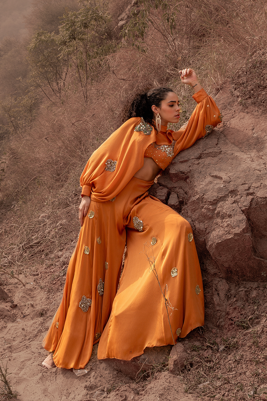 Embroidered Blouse Paired with Flared Sharara and Embroidered Dupatta
