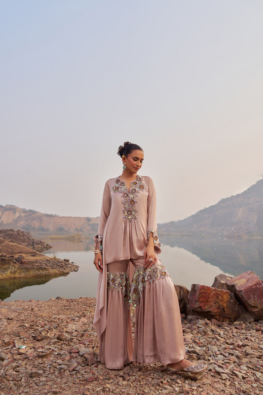 Embroidered Kurta Paired with Sharara and Embroidered Dupatta