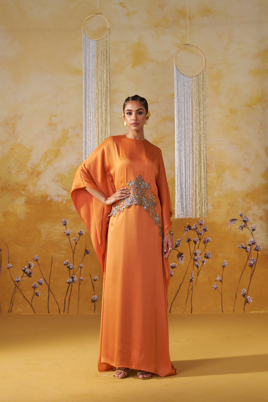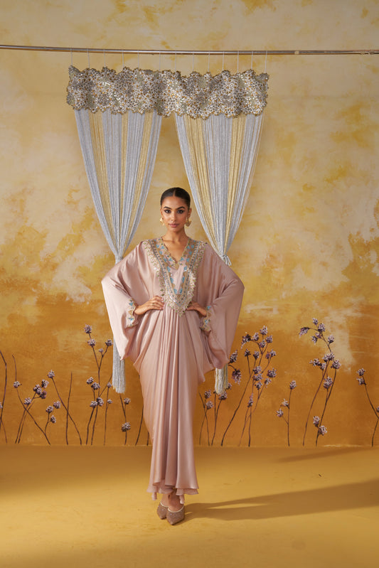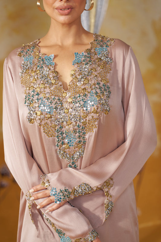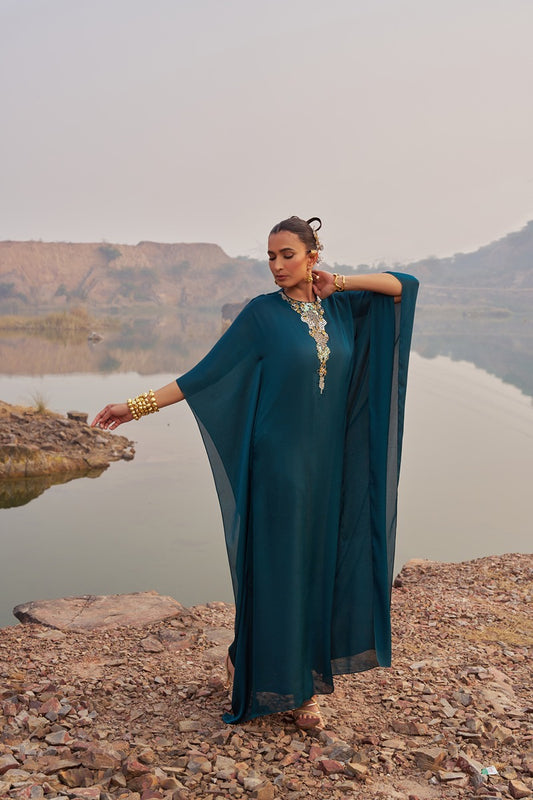 Embroidered Neck with Tassel Detail and Double Layer Kaftan with Slip